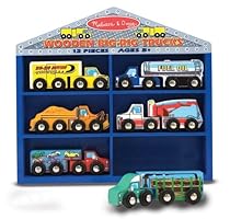 Melissa & Doug 685 Review: Melissa & Doug Deluxe Wooden Big Rig Trucks Set. grandson loves the trucks. their garage is really sturdy, needs place to hang or sit. at first had a little trouble since the image of truck is just on the block of wood, but loves playing with these on his train tracks. should last forever.6 of 7 . Read more »